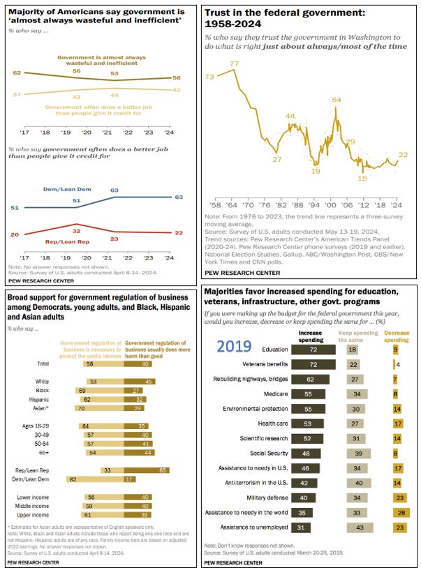 The United States is on the edge of financial chaos. The DOGE must channel its inner Jackson, Coolidge, and Truman and be forceful in its pursuit of diligent cost cutting. DOGE must approach this like a war, with hardship and sacrifice necessary from all Americans. People WILL be adversely affected. NOW is the time to act; according to PEW Research, Americans’ trust in government is near all time lows and 56% feel that government spending is almost always wasteful. Public sentiment WILL turn as soon as you begin eliminating waste and cutting spending.